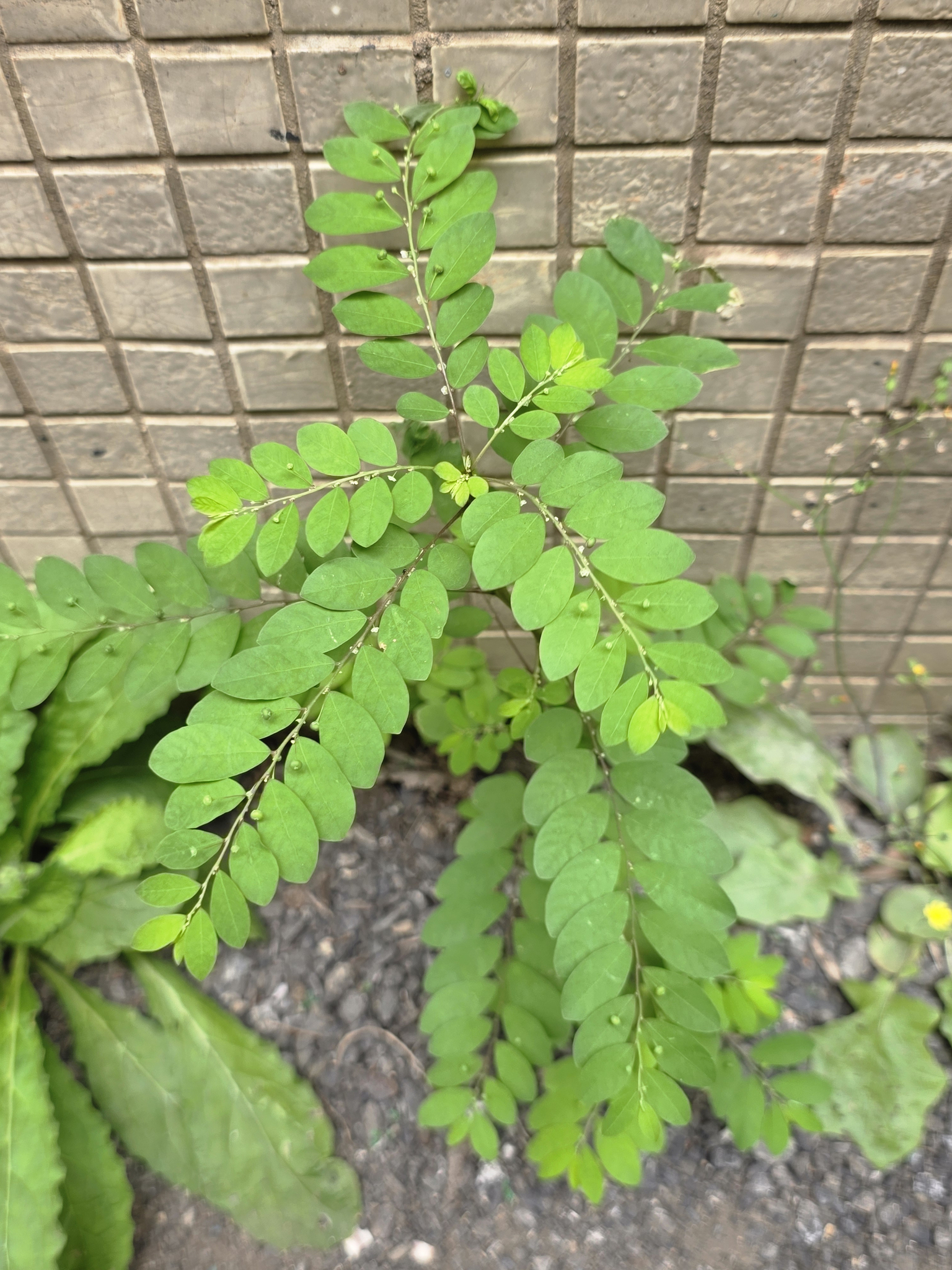 物種五蕊油柑 Phyllanthus tenellus Roxb. (未鑑定)[原始紀錄物種] 五蕊油柑 Phyllanthus tenellus Roxb.鑑定未鑑定敏感層級座標不開放日期2026-03-25地點記錄者Helen Shine 物候 枝葉成熟期, 花苞發育期, 開花期, 結實期 族群數量 一些some 描述 授權照片授權: CC BY (Helen Shine)識別號21a752cb-01e5-4047-bd13-3ef2e638df60 (OccurrenceUUID)2185155 (nid)