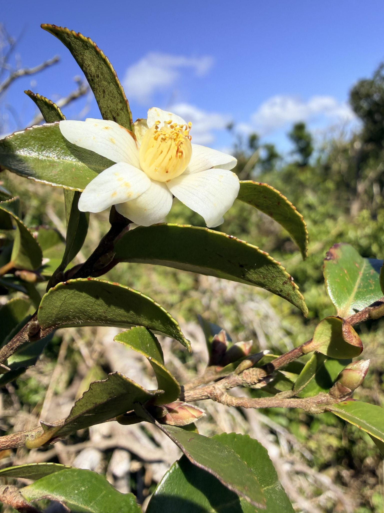 物種短柱山茶 Camellia brevistyla (Hayata) Cohen-Stuart (未鑑定)[原始紀錄物種] 短柱山茶 Camellia brevistyla (Hayata) Cohen-Stuart鑑定未鑑定敏感層級座標不開放日期2026-01-04地點記錄者yalan 物候 枝葉成熟期, 盛花期 族群數量 一些some 描述 授權照片授權: CC BY (yalan)識別號2f5e4136-d4cb-41b0-ac7a-7d8d9b6b982e (OccurrenceUUID)2179980 (nid)