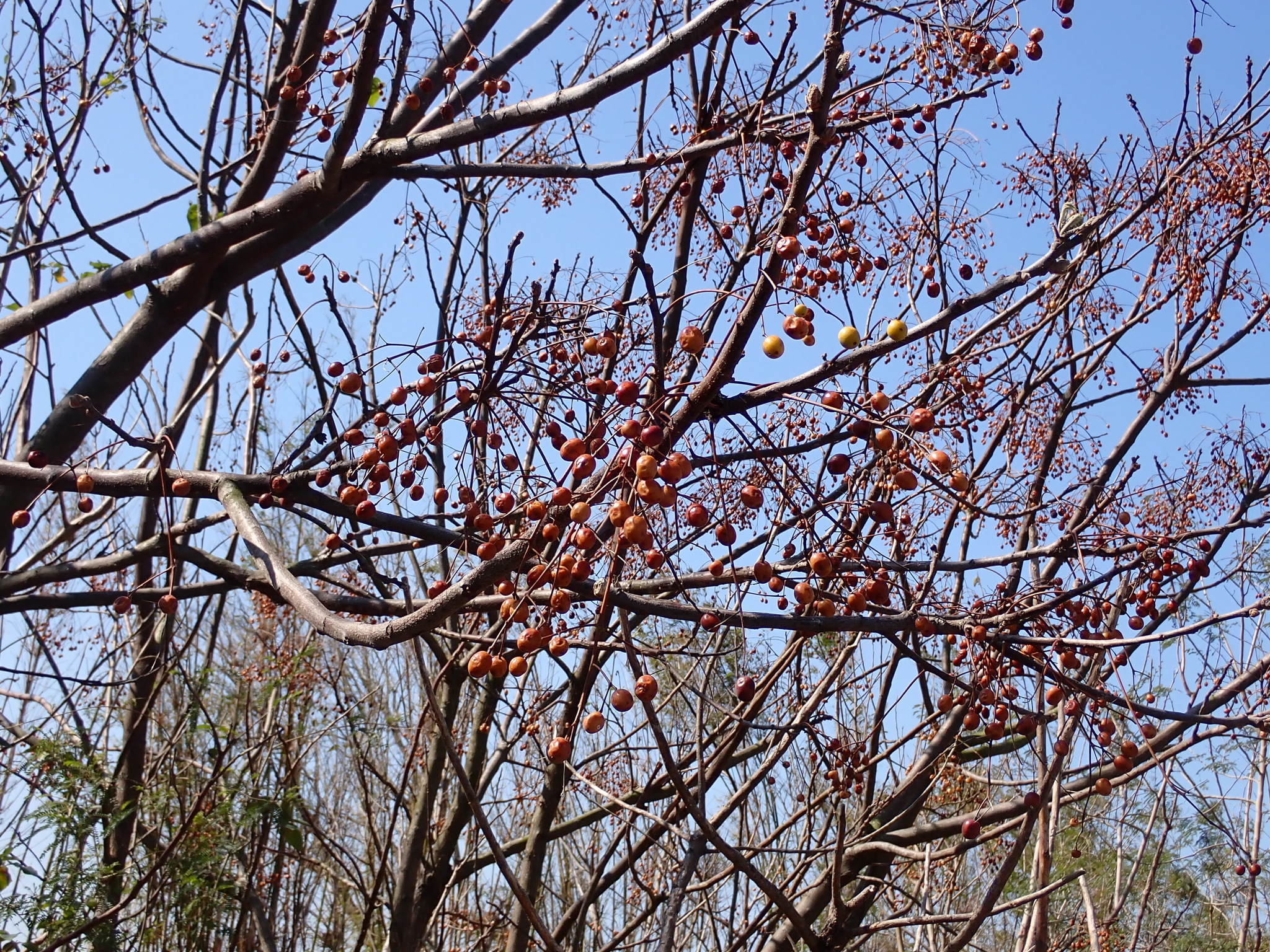 物種楝 Melia azedarach L. (未鑑定)[原始紀錄物種] 楝 Melia azedarach L.鑑定未鑑定敏感層級座標不開放日期2026-02-10地點記錄者黃屏 物候 果熟期 族群數量 一些some 描述 授權照片授權: CC BY (黃屏)識別號3623771e-b9cd-404a-85fc-ebe05e76bf60 (OccurrenceUUID)2183260 (nid)