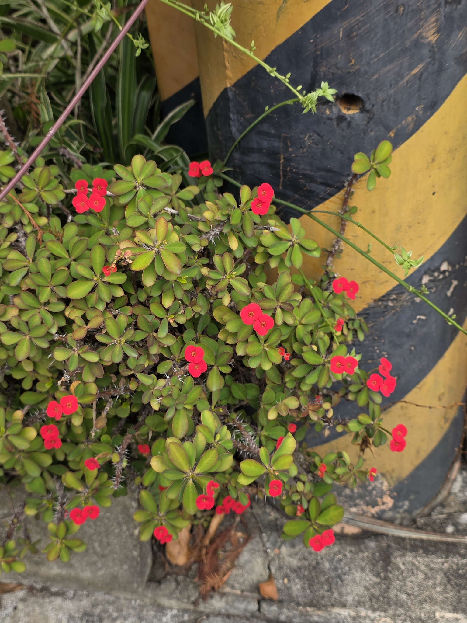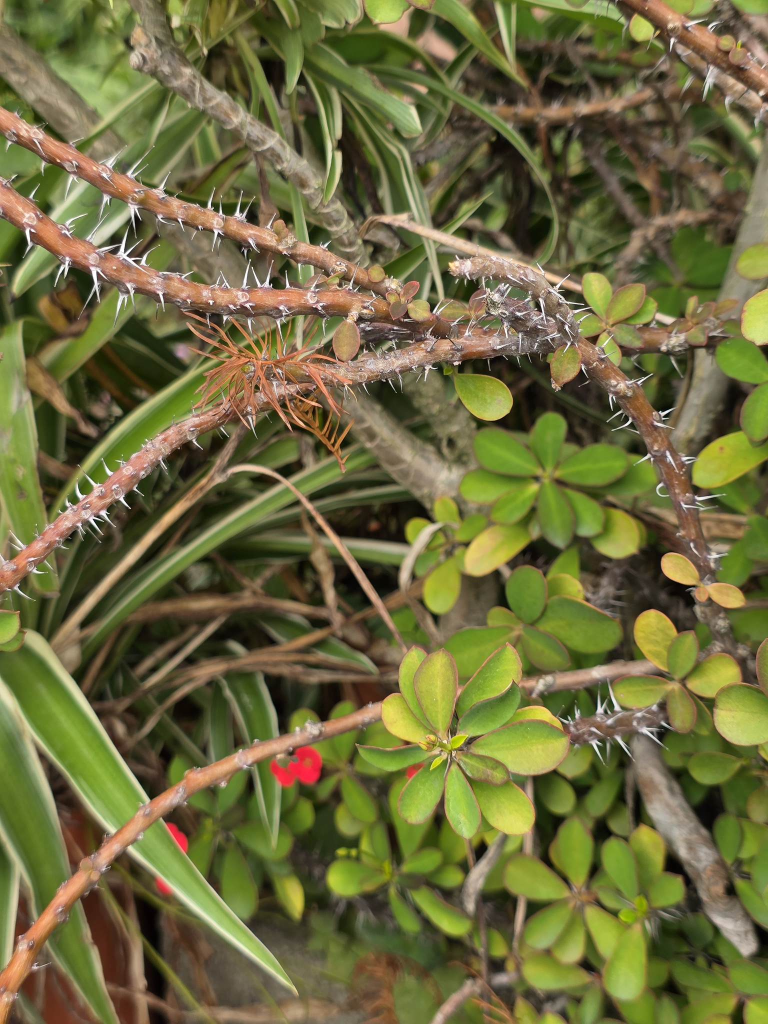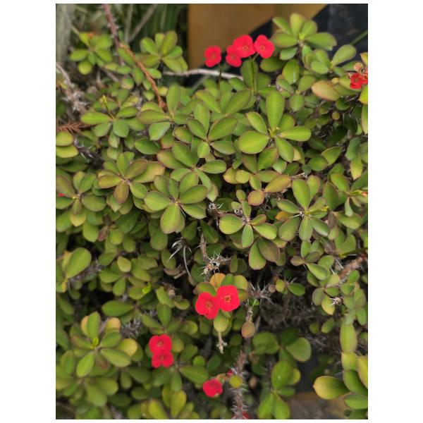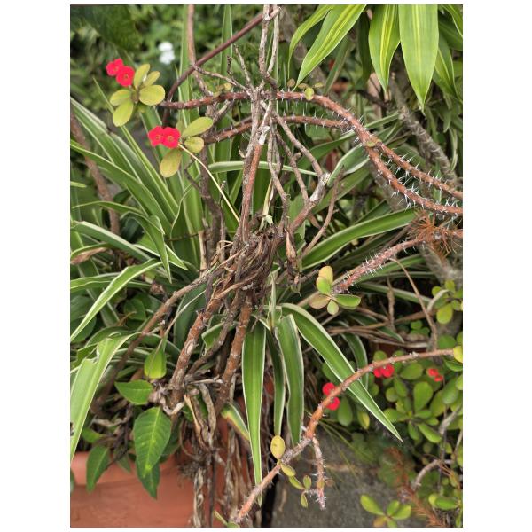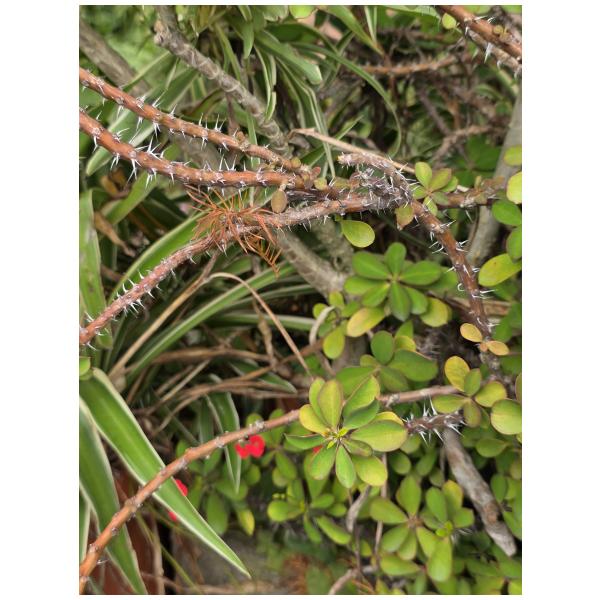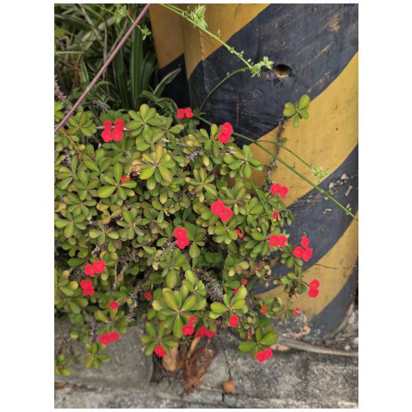 物種麒麟花 Euphorbia milii Des Moul. (未鑑定) (圈養/栽植)[原始紀錄物種] 麒麟花 Euphorbia milii Des Moul.鑑定未鑑定敏感層級座標不開放日期2026-03-08地點記錄者Helen Shine 物候 新葉發育開展期, 枝葉成熟期, 花苞發育期, 開花期 族群數量 一些some 描述 授權照片授權: CC BY (Helen Shine)識別號4528885e-0a3c-4d9a-b88a-bba350acab0d (OccurrenceUUID)2184361 (nid)