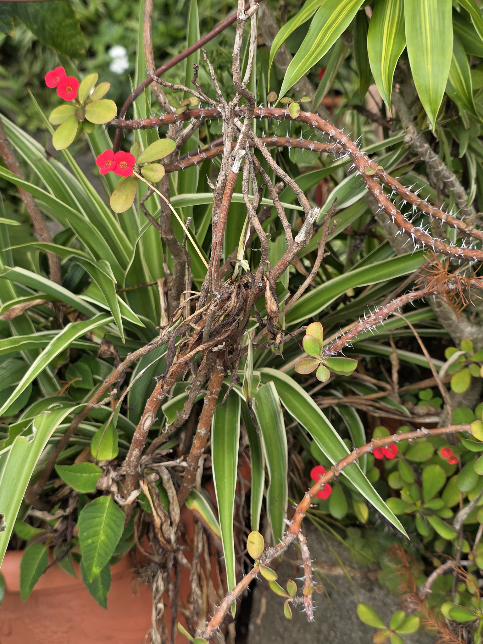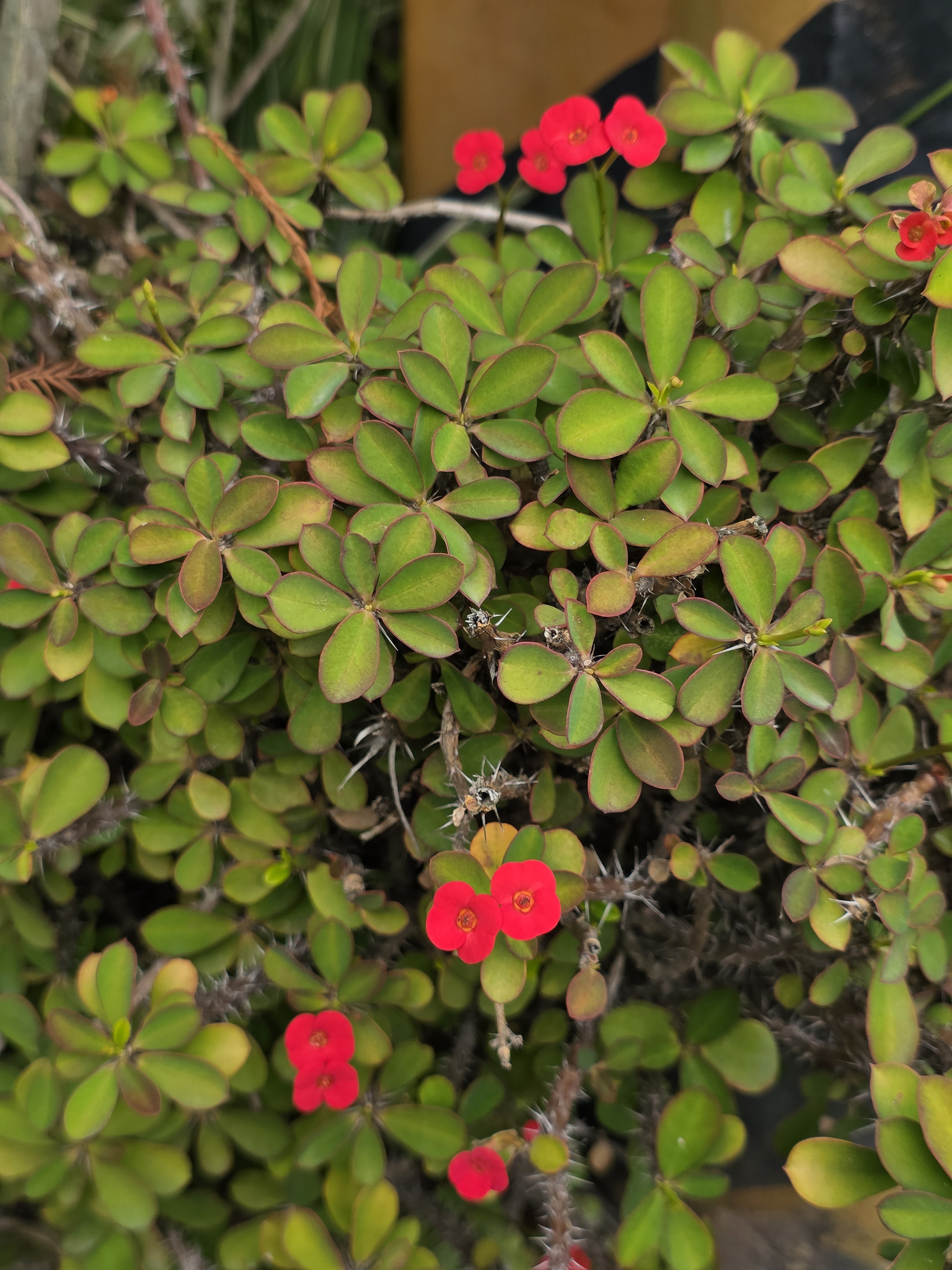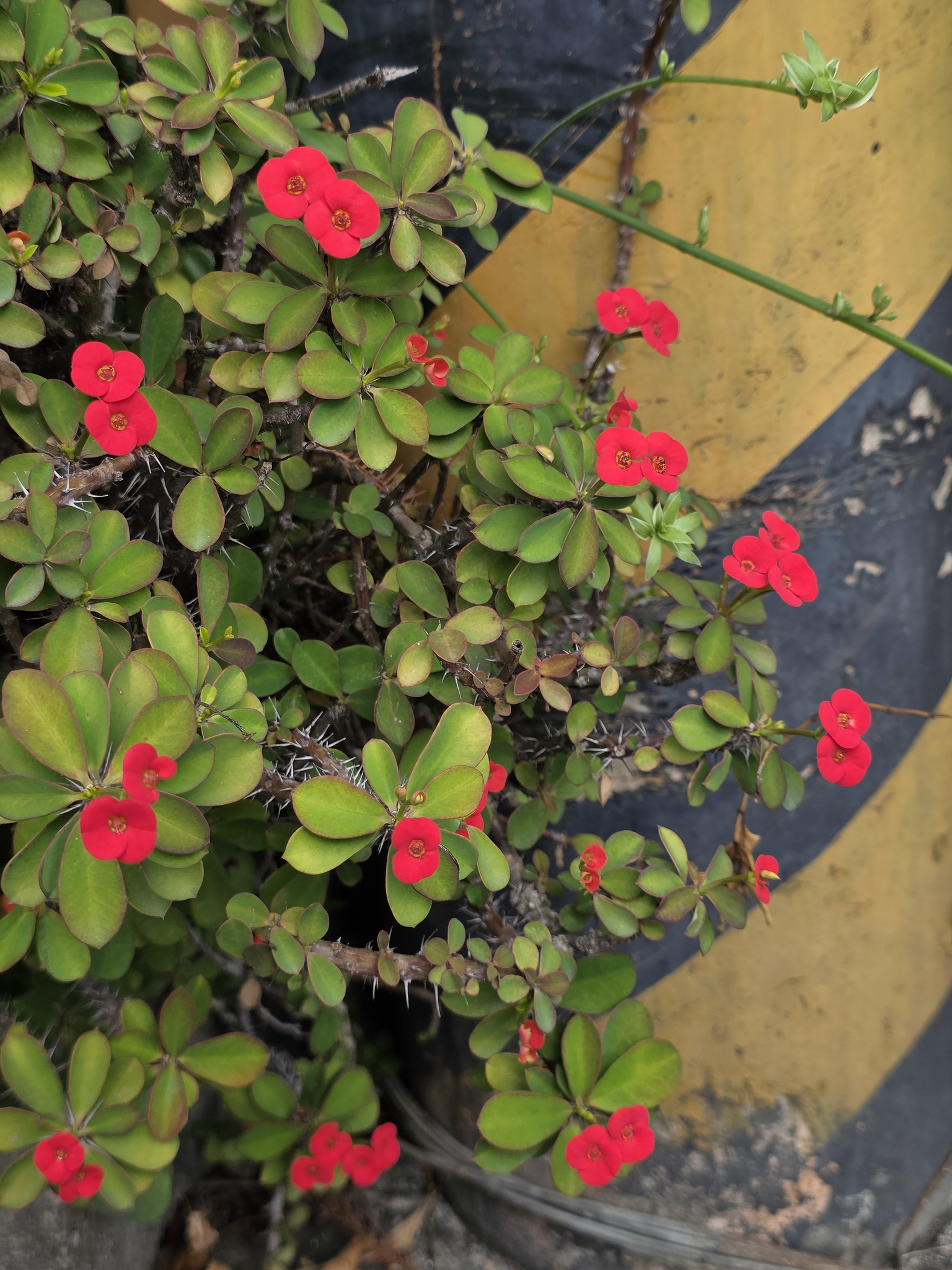 物種麒麟花 Euphorbia milii Des Moul. (未鑑定) (圈養/栽植)[原始紀錄物種] 麒麟花 Euphorbia milii Des Moul.鑑定未鑑定敏感層級座標不開放日期2026-03-08地點記錄者Helen Shine 物候 新葉發育開展期, 枝葉成熟期, 花苞發育期, 開花期 族群數量 一些some 描述 授權照片授權: CC BY (Helen Shine)識別號4528885e-0a3c-4d9a-b88a-bba350acab0d (OccurrenceUUID)2184361 (nid)