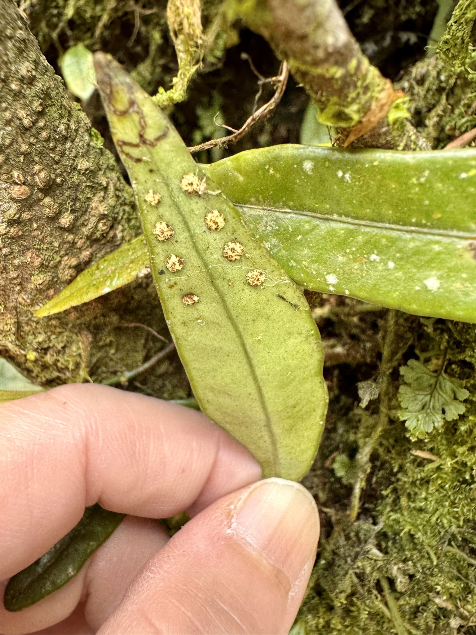 物種骨牌蕨 Lemmaphyllum diversum (Rosenst.) Tagawa (未鑑定)[原始紀錄物種] 骨牌蕨 Lemmaphyllum diversum (Rosenst.) Tagawa鑑定未鑑定敏感層級座標不開放日期2026-04-02地點記錄者Jenny Tsai 物候 枝葉成熟期, 孢子囊成熟 族群數量 常見common 描述 授權照片授權: CC BY (Jenny Tsai)識別號5f7a808b-8ac4-4592-944c-d561cd8dc37b (OccurrenceUUID)2185751 (nid)