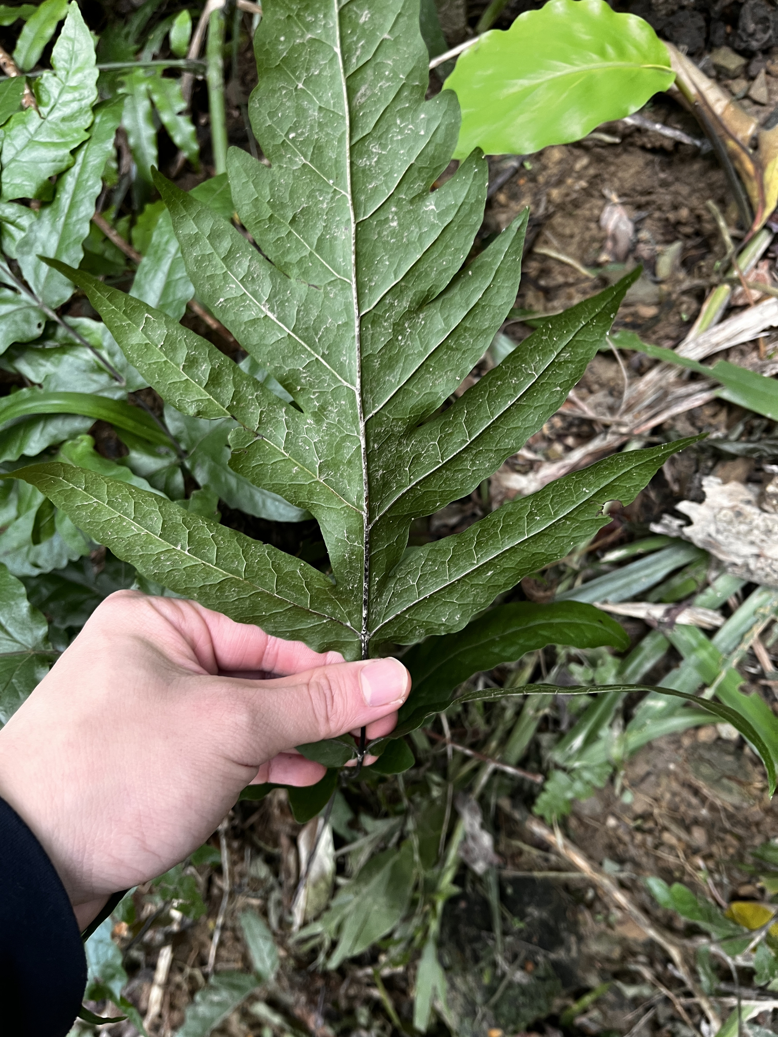 物種蛇脈三叉蕨 Tectaria phaeocaulis (Rosenst.) C.Chr. (未鑑定)[原始紀錄物種] 蛇脈三叉蕨 Tectaria phaeocaulis (Rosenst.) C.Chr.鑑定未鑑定敏感層級座標不開放日期2026-01-18地點記錄者賢仔 物候 枝葉成熟期 族群數量 稀少rare 描述 授權照片授權: CC BY (賢仔)識別號8115fa16-103f-4751-9bb3-a2582cc59954 (OccurrenceUUID)2182599 (nid)
