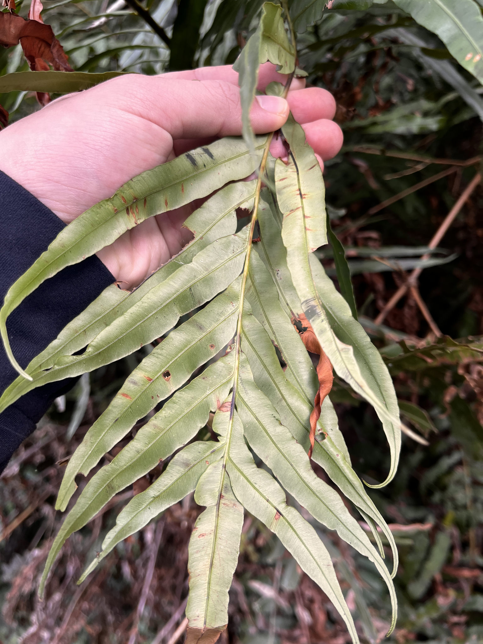物種烏毛蕨 Blechnopsis orientalis (L.) C.Presl (未鑑定)[原始紀錄物種] 烏毛蕨 Blechnopsis orientalis (L.) C.Presl鑑定未鑑定敏感層級座標不開放日期2026-01-18地點記錄者賢仔 物候 枝葉成熟期, 孢子囊發育中, 孢子囊成熟 族群數量 中等medium 描述 授權照片授權: CC BY (賢仔)識別號82b8dda0-8494-4c28-bfc0-b7dfd4cf54a3 (OccurrenceUUID)2182576 (nid)