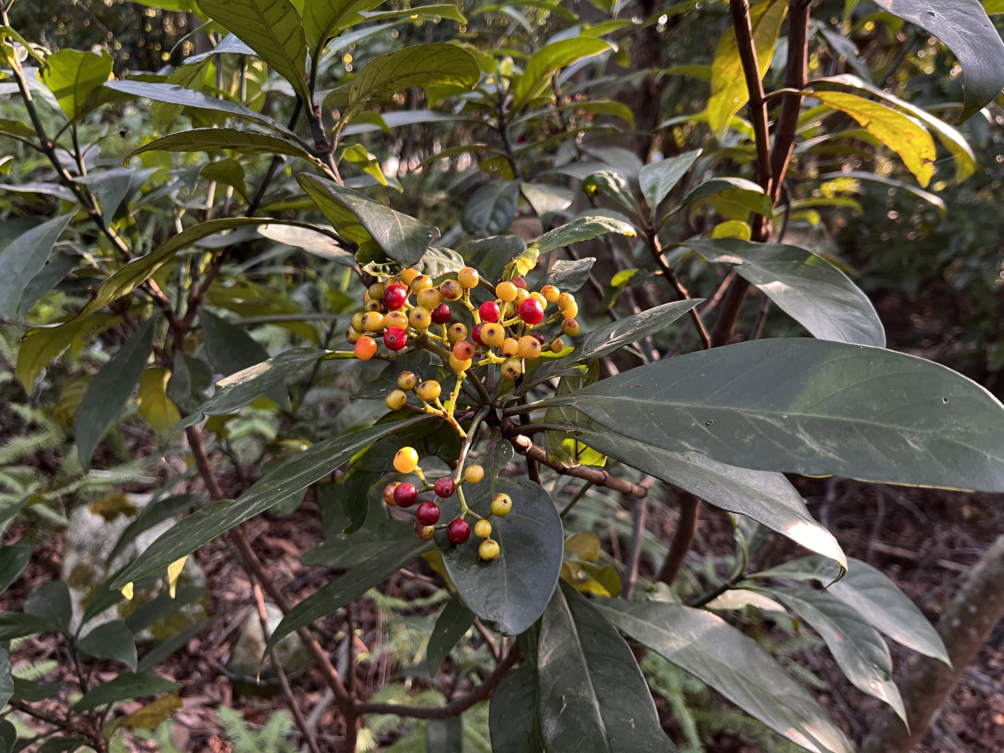 物種九節木 Psychotria rubra (Lour.) Poir. (未鑑定)[原始紀錄物種] 九節木 Psychotria rubra (Lour.) Poir.鑑定未鑑定敏感層級座標不開放日期2026-01-09地點記錄者賢仔 物候 枝葉成熟期, 結實期, 果熟期 族群數量 常見common 描述 授權照片授權: CC BY (賢仔)識別號85d426b9-fd8c-4faa-a8c4-24075f9672da (OccurrenceUUID)2182427 (nid)