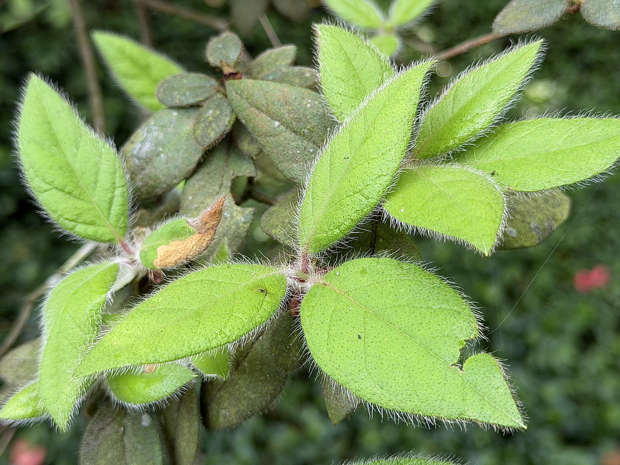 物種金毛杜鵑 Rhododendron oldhamii Maxim. (未鑑定)[原始紀錄物種] 金毛杜鵑 Rhododendron oldhamii Maxim.鑑定未鑑定敏感層級座標不開放日期2026-04-17地點記錄者Henry Chen 物候 新葉發育開展期, 枝葉成熟期, 開花期 族群數量 一些some 描述 授權照片授權: CC BY (Henry Chen)識別號8abee800-9bf3-4961-ae8b-e3bf89ad58b8 (OccurrenceUUID)2186550 (nid)