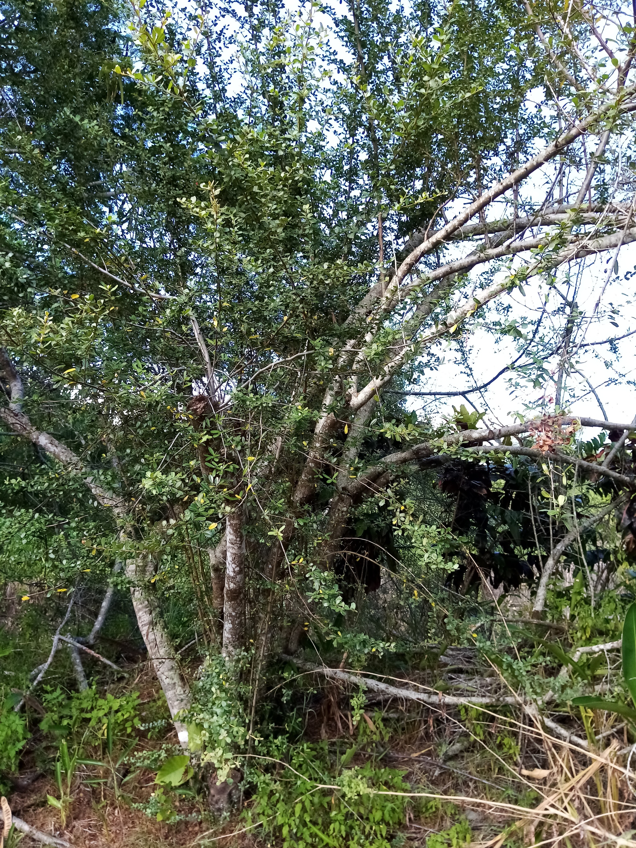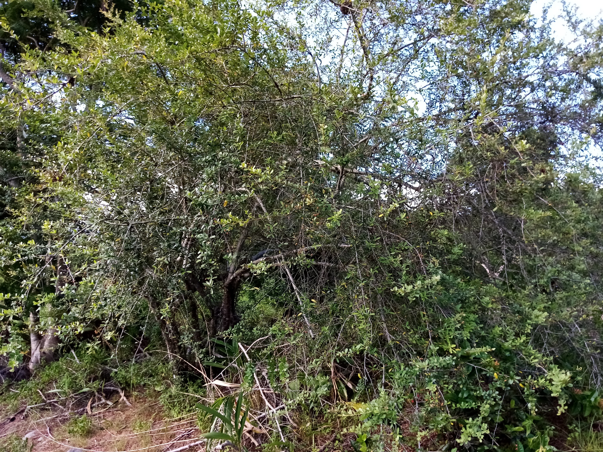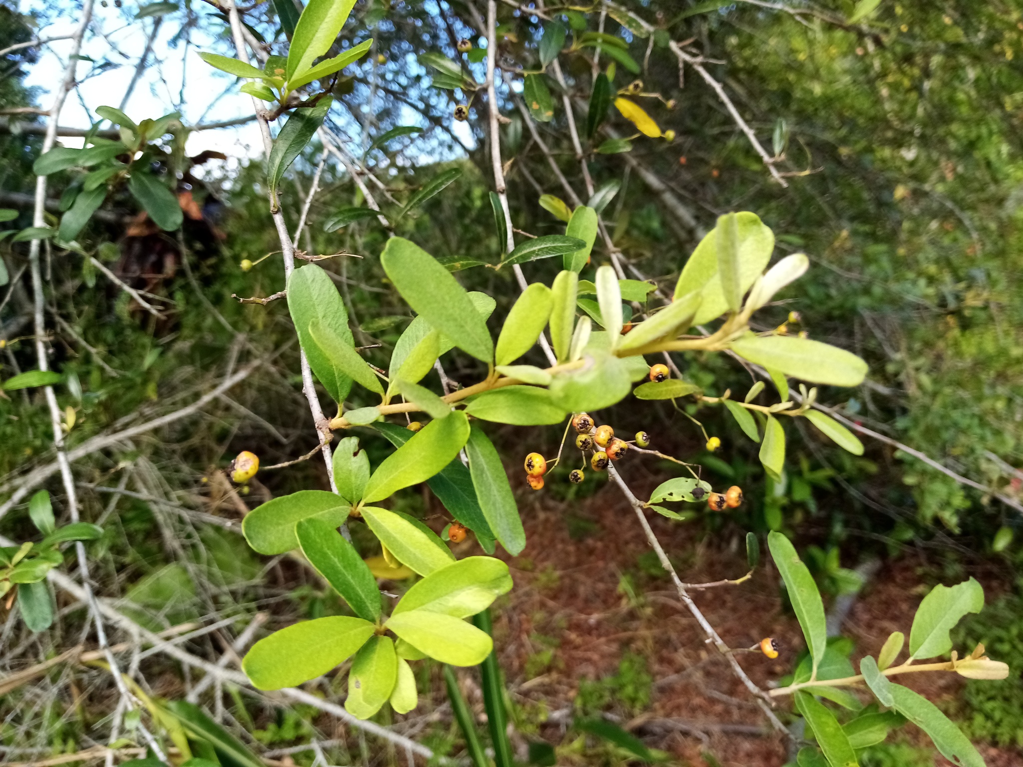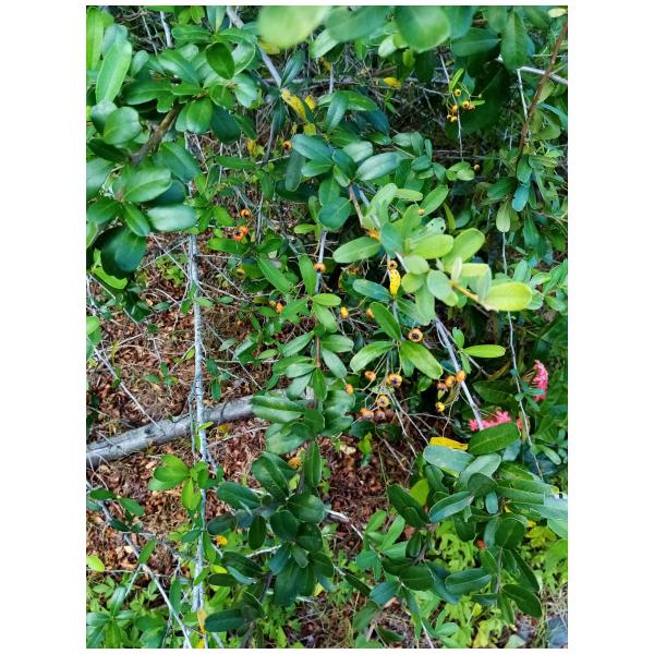 應該是火刺木,但不確定是否原生種。這種原來在河床溪畔隨處可見的樹種,已經稀有了
