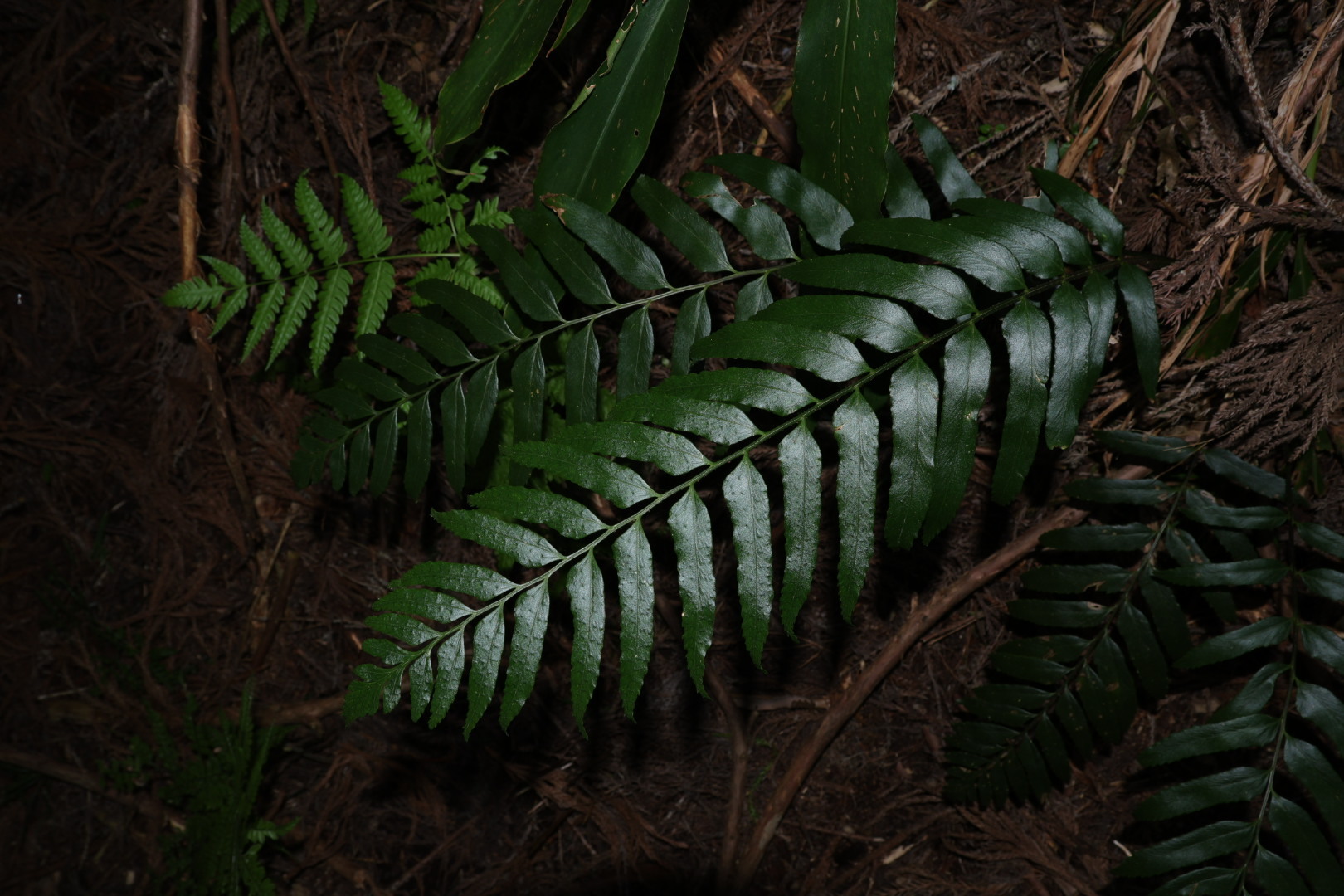 物種狹葉貫眾蕨 Cyrtomium hookerianum (C.Presl) C.Chr. (未鑑定)[原始紀錄物種] 狹葉貫眾蕨 Cyrtomium hookerianum (C.Presl) C.Chr.鑑定未鑑定敏感層級座標不開放日期2026-04-12地點記錄者jun1115 物候 枝葉成熟期, 孢子囊成熟並開散中 族群數量 一些some 描述 授權照片授權: CC BY (jun1115)識別號a617c8d0-3f79-496a-9478-0331870df78a (OccurrenceUUID)2186233 (nid)