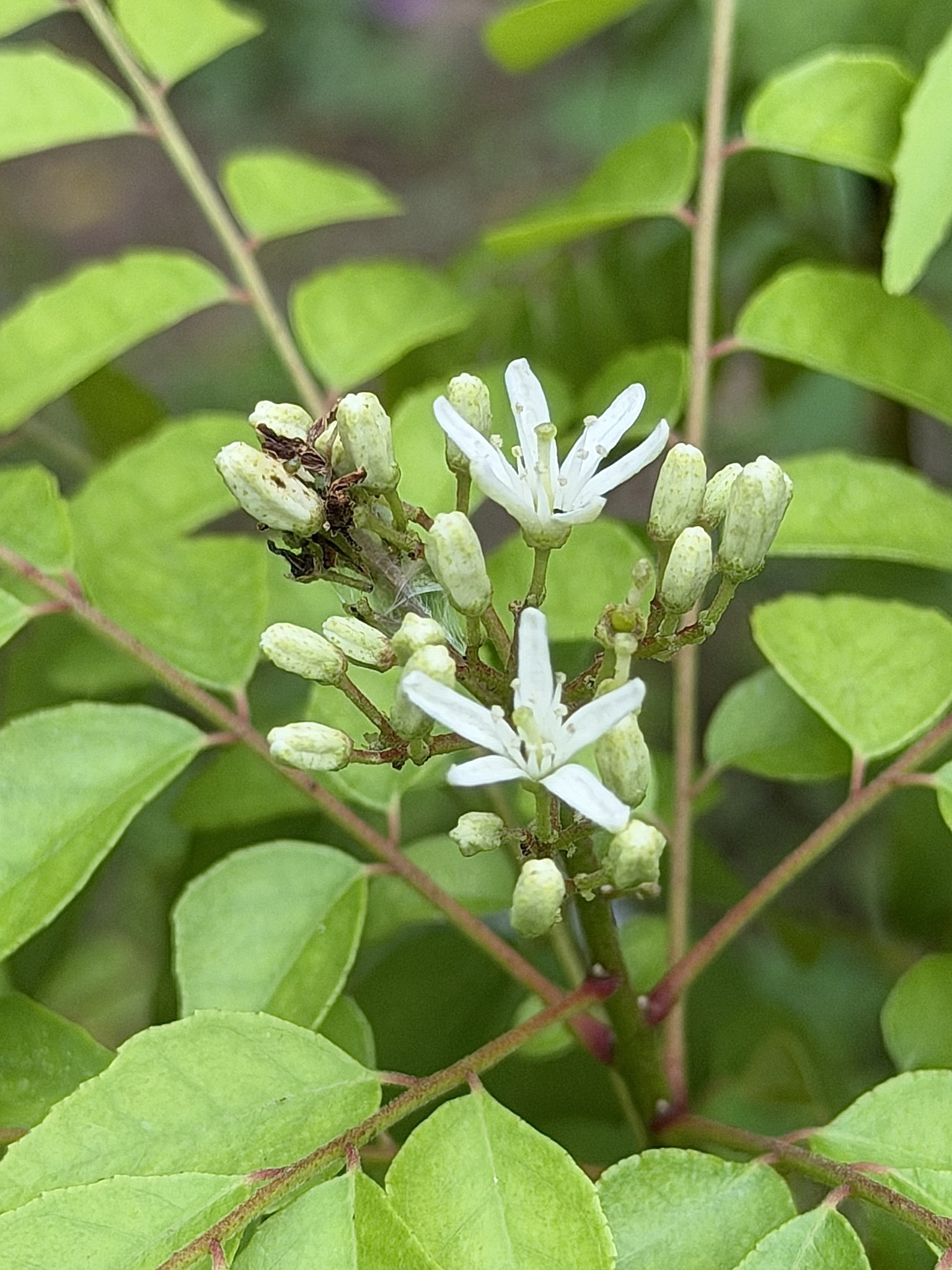 物種可因氏月橘 Murraya koenigii (L.) Spreng. (未鑑定) (圈養/栽植)[原始紀錄物種] 可因氏月橘 Murraya koenigii (L.) Spreng.鑑定未鑑定敏感層級座標不開放日期2026-04-23地點記錄者Henry Chen 物候 新葉發育開展期, 開花期 族群數量 一些some 描述 授權照片授權: CC BY (Henry Chen)識別號bbf87343-24bf-4f77-af5e-283053aacd6a (OccurrenceUUID)2186861 (nid)
