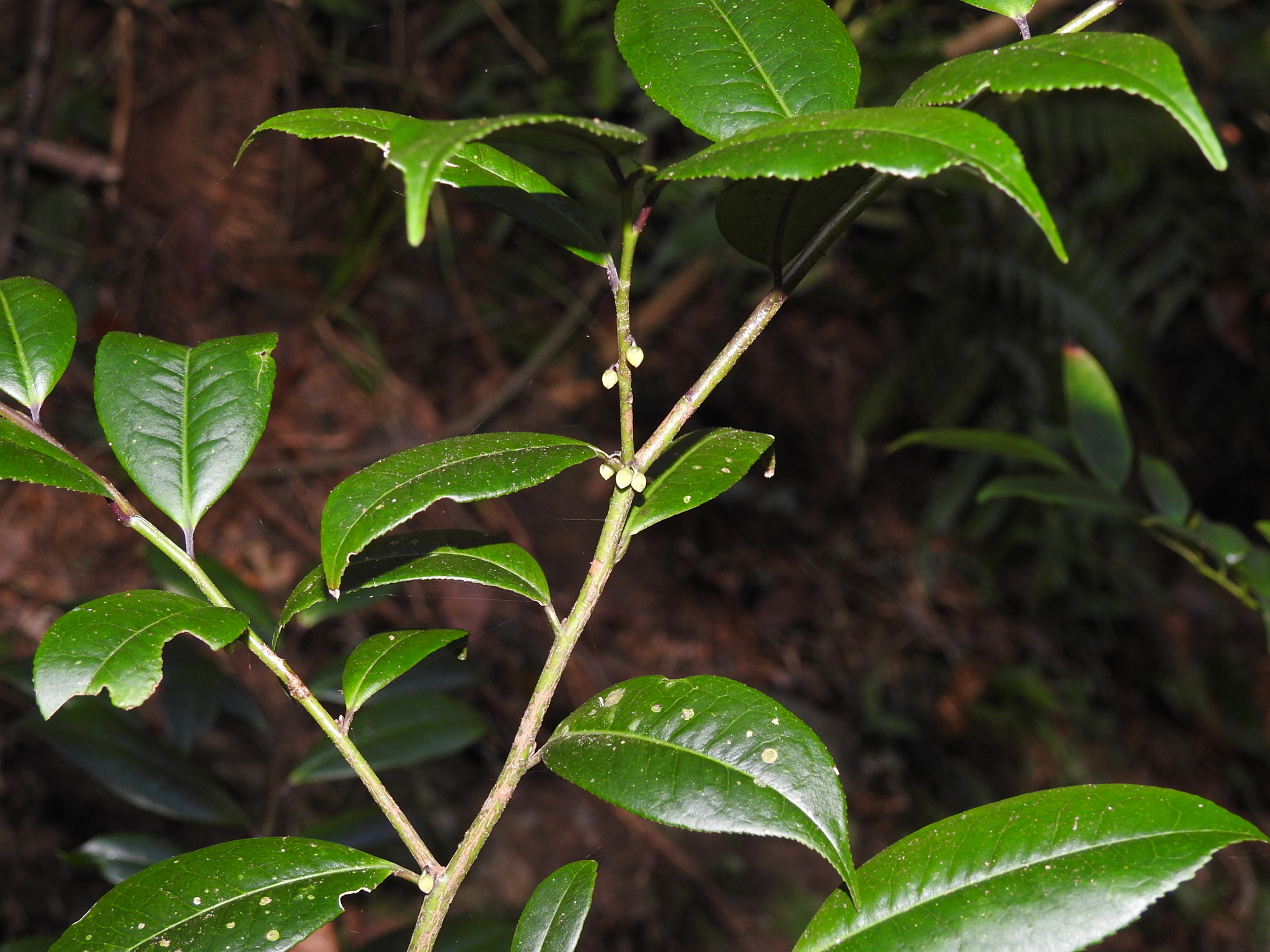 物種蓮華池柃木 Eurya rengechiensis Yamam.[原始紀錄物種] 蓮華池柃木 Eurya rengechiensis Yamam. 鑑定鍾明哲 ● 2021-06-06敏感層級重度日期2015-12-05地點24,121 南投縣仁愛鄉記錄者陳慧珠 物候 花苞發育期 族群數量 一些some 描述 授權照片授權: CC BY (陳慧珠)識別號d053d890-bc85-460a-89d7-2ca8ecf051cd (OccurrenceUUID)2064206 (nid) 鑑定歷程 日期 鑑定者 學名 中名 參考文獻 備註 2021-06-06 鍾明哲 Eurya rengechiensis