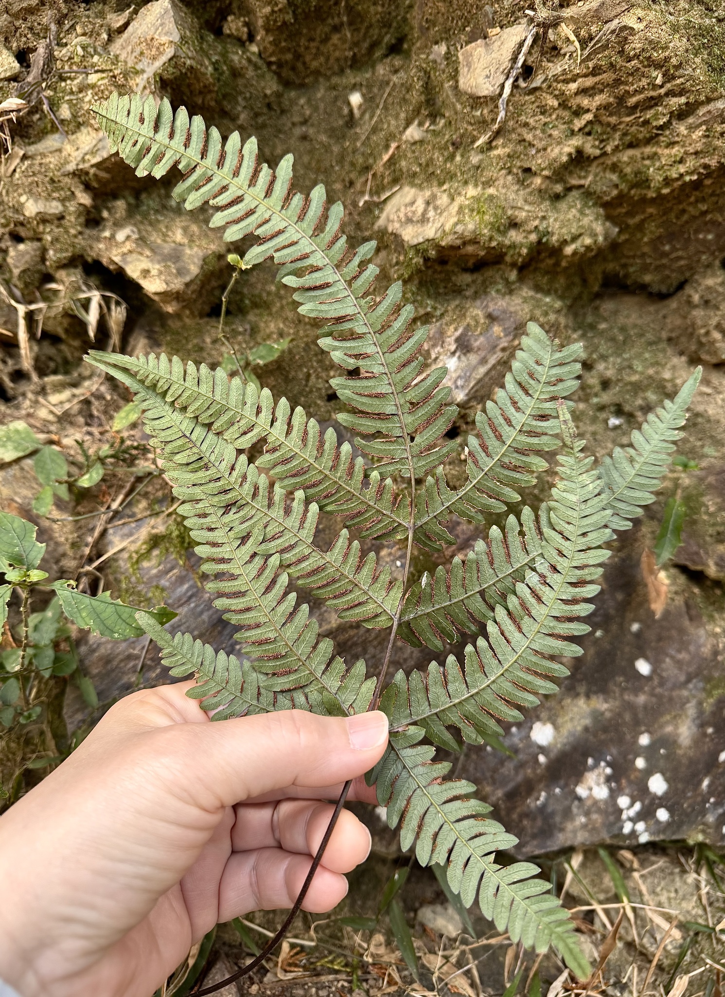物種紅柄鳳尾蕨 Pteris aspericaulis Wall. ex J.Agardh (未鑑定)[原始紀錄物種] 紅柄鳳尾蕨 Pteris aspericaulis Wall. ex J.Agardh鑑定未鑑定敏感層級座標不開放日期2026-03-02地點記錄者Jenny Tsai 物候 枝葉成熟期, 孢子囊發育中 族群數量 一些some 描述 授權照片授權: CC BY (Jenny Tsai)識別號ed14507e-4753-460b-8ac9-0e84a8c6c3f5 (OccurrenceUUID)2184236 (nid)